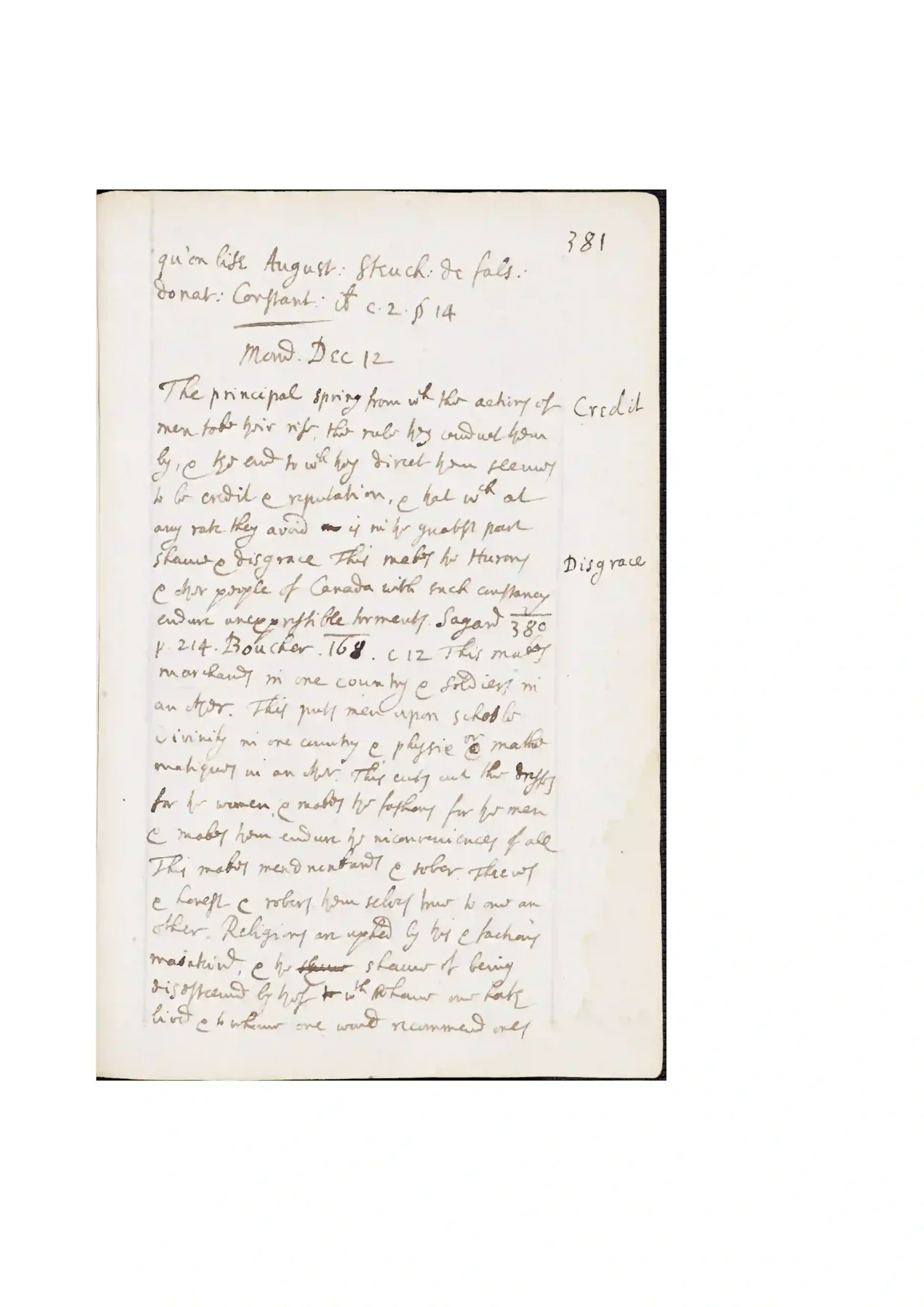 12 December 1678. Marginal keywords: ‘Credit, Disgrace’. MS Locke, f. 3, pp. 381-2. Bodleian Library, University of Oxford. Images: Digital Bodleian, used under Creative Commons License CC-BY-NC 4.0