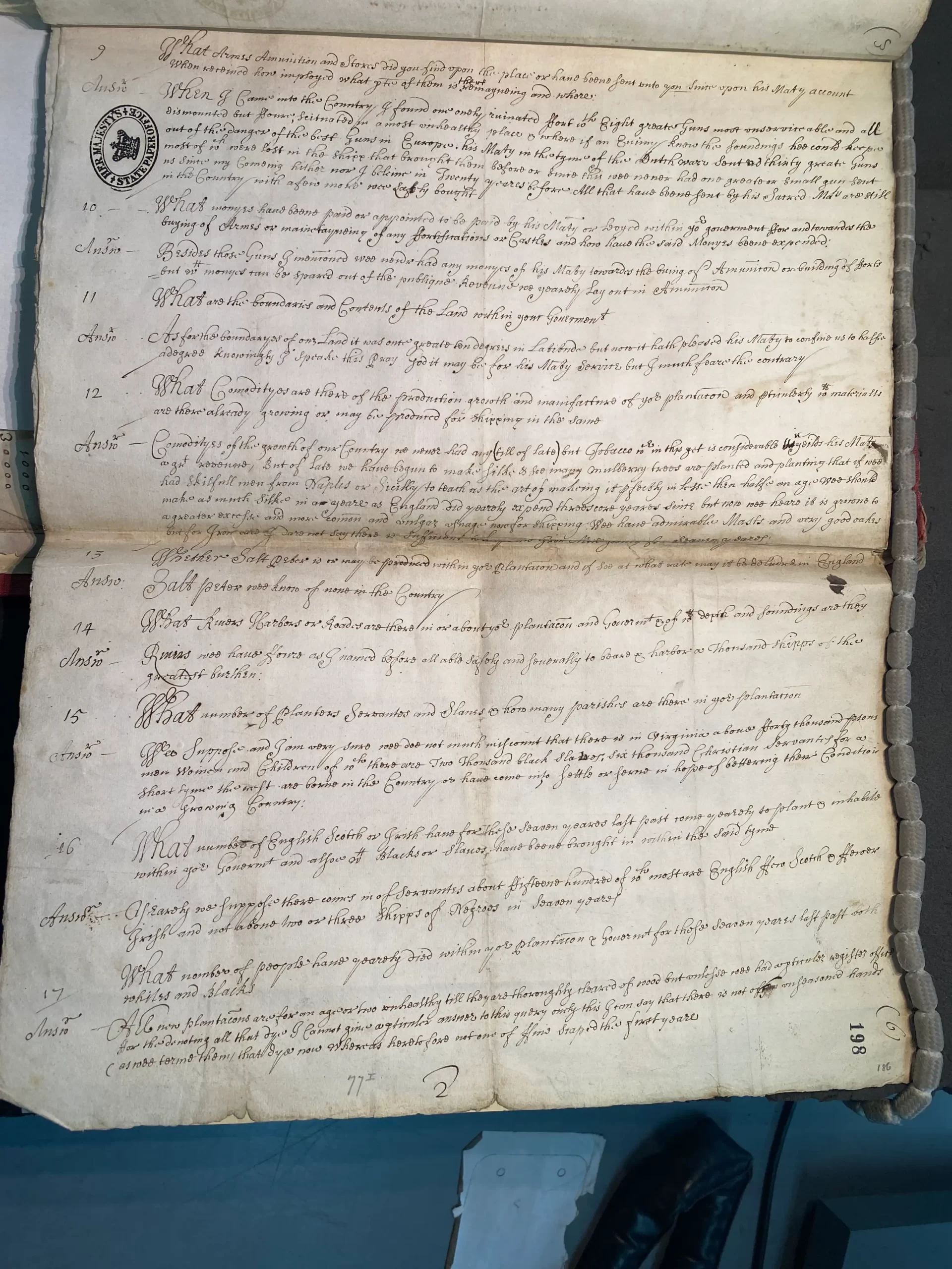 “Enquiries to the Governor of Virginia (1671)”, ed. Holly Brewer. Transcribed by Lauren Michalak, Jamie Gemmell, Dylan Bails and Holly Brewer. Slavery Law & Power in Early America and the British Empire – Accessed 28th April 2026. https://slaverylawpower.org/chapters/restoration-settlements/enquiries-governor-virginia-1671/ [Original Source: Enquiries to the Governor of Virginia (1671). CO 1/26, NO. 77, I, II. The National Archives, United Kingdom.]