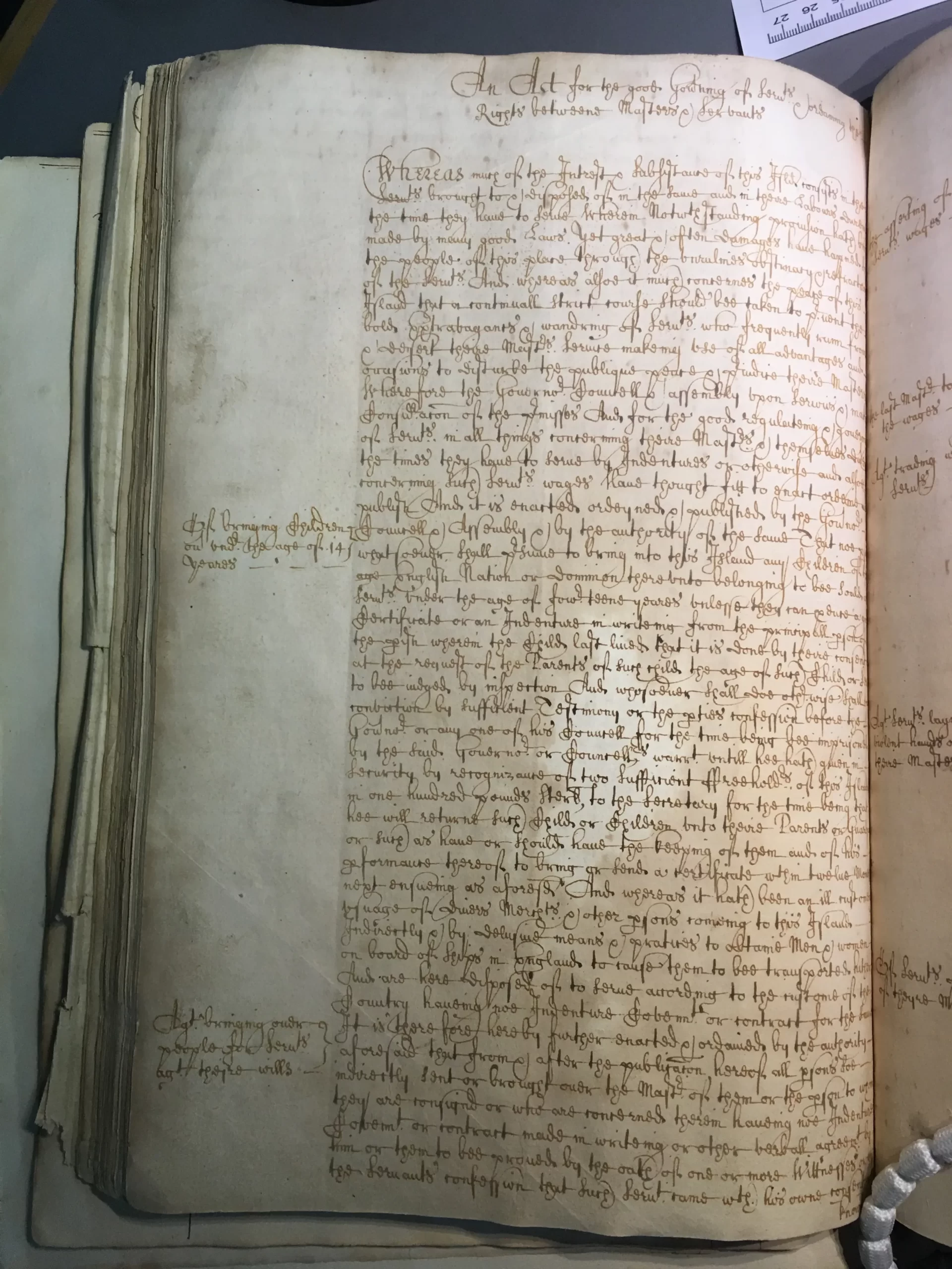 “An Act for the good Governing of Servants & ordering Rights betweene Masters & Servants”
