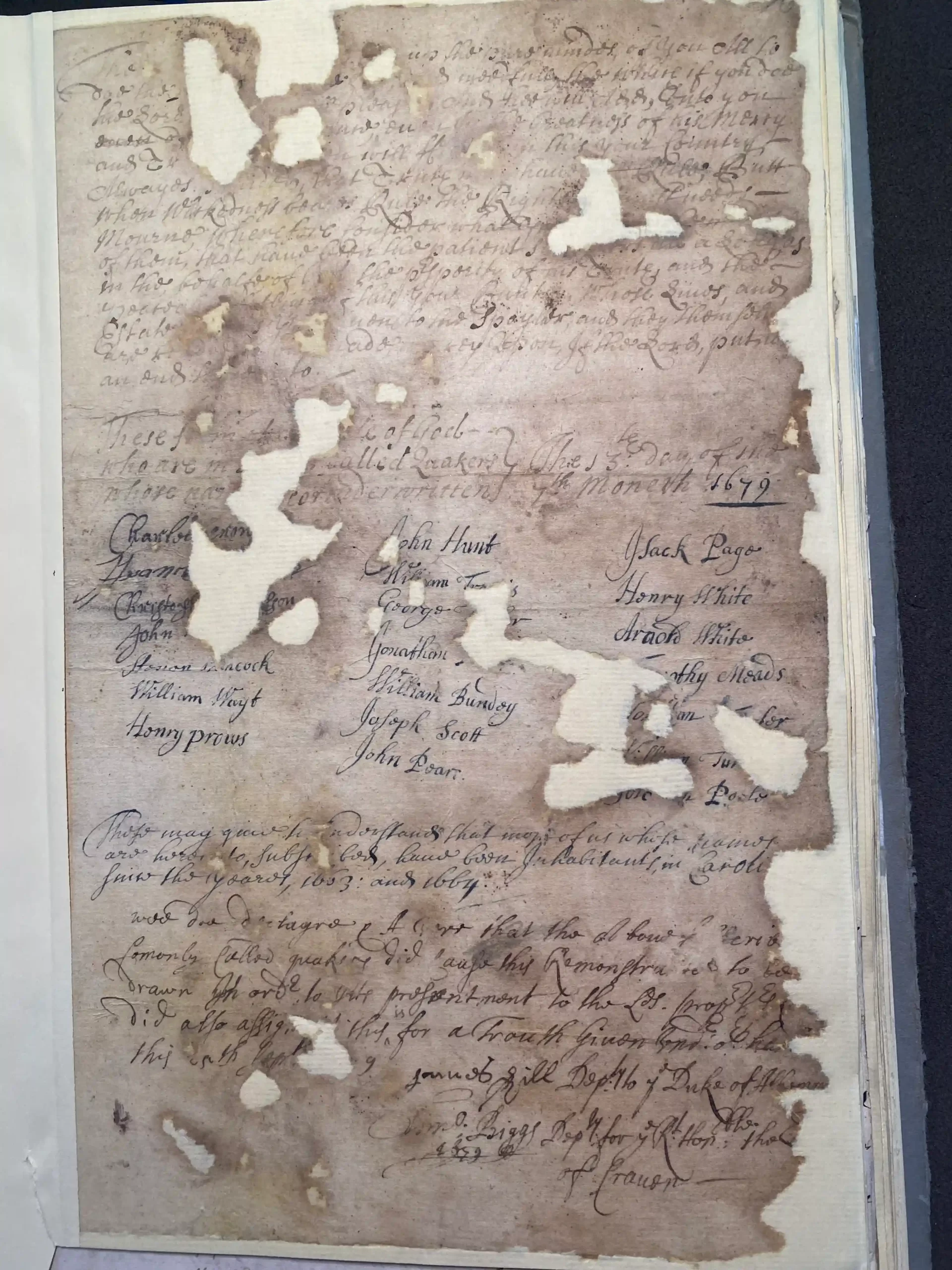 whose na[…] cor under written} 7th Moneth 1679