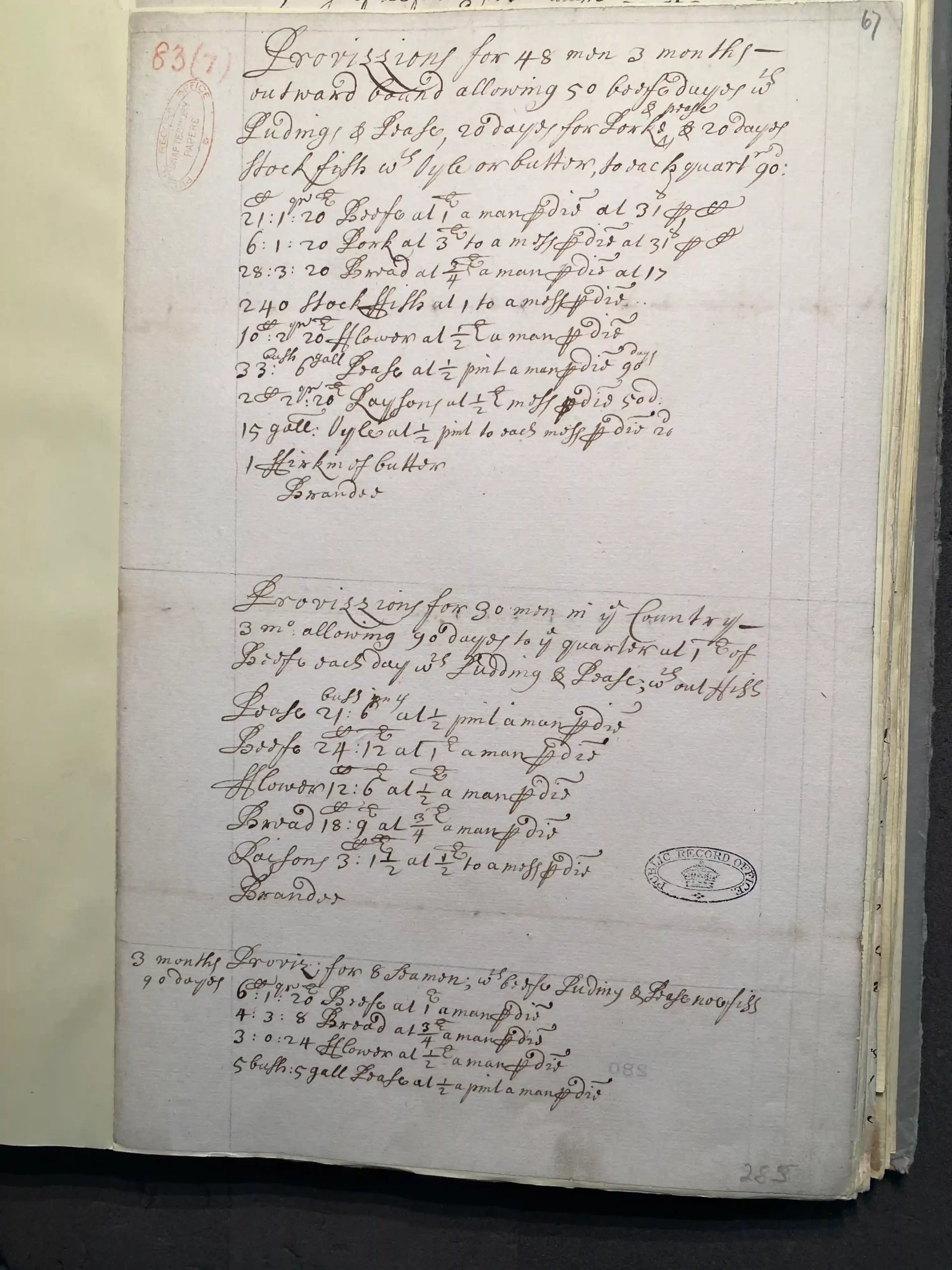Provisions for 48 men 3 months